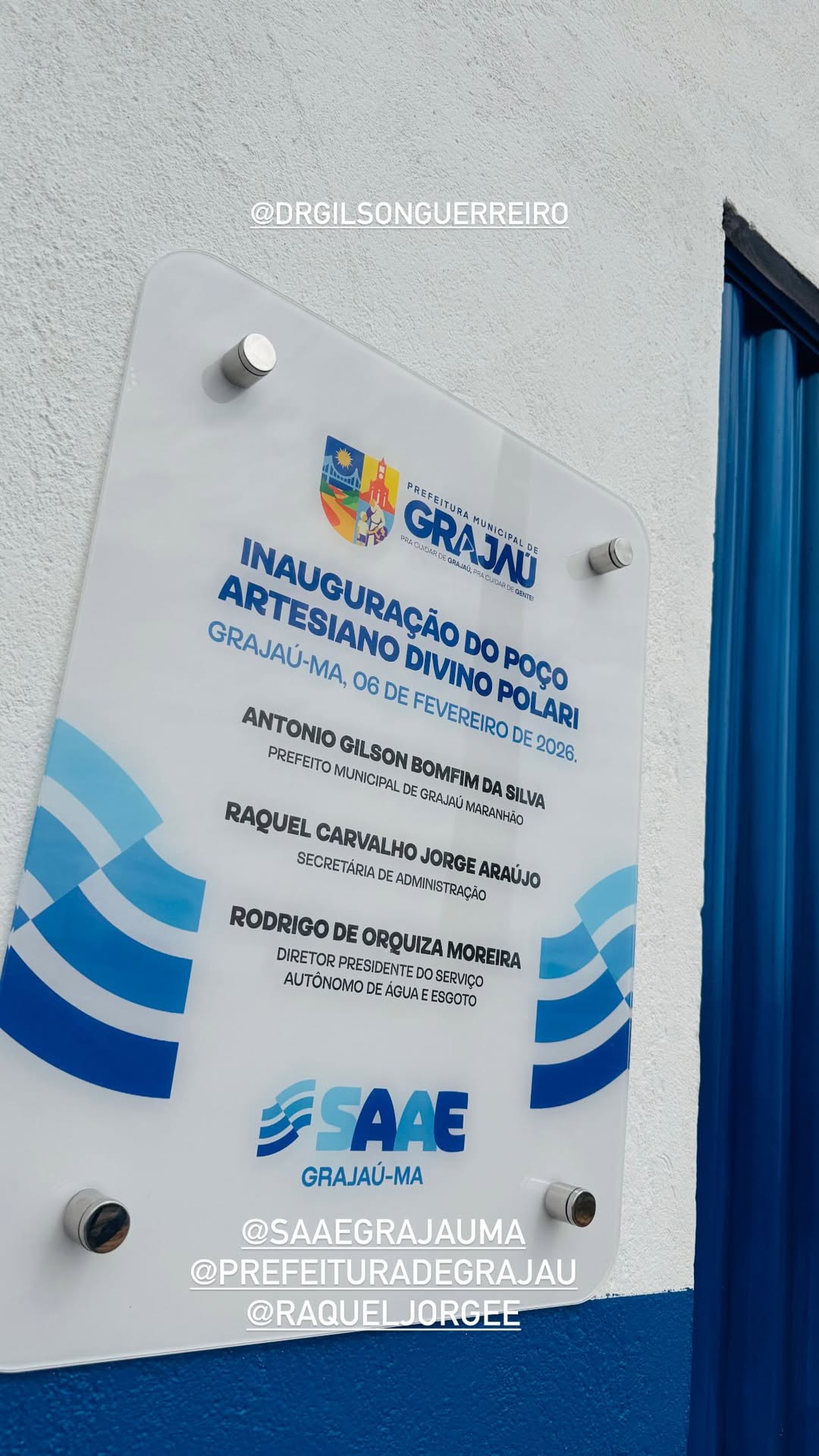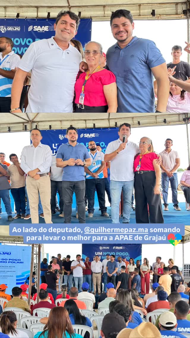 O prefeito Gilson Guerreiro, ao lado dos deputados Junior Lourenço e Guilherme Paz, segue avançando com ações concretas em Grajaú. Nesta sexta-feira (06), o gestor inaugurou o Poço Artesiano Divino Polari, na Vila Tucum, uma obra já concluída e em pleno funcionamento, que vai garantir água em abundância e de qualidade para pelo menos quatro bairros adjacentes, por meio do SAAE.